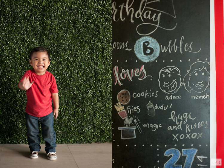 Our hero Rum, just turned two! This little guy, my super cute nephew, is the first in our family’s next generation of champions. I love how he has brought so much love and togetherness ( and pictures!) to our family. His first photo shoot with us was when he was about six months old. The photos are still available at this blog. You can check them out here! Pocket-size reunions now happen on a semi-regular basis just because we want to play with him, and we want to see how much he’s grown from the last time we saw him. It’s always a good time! For his birthday, his cool parents, Tuts and Moie decided on a theme that combined his most favorite toys: “Balls, Balloons and Bubbles”.
