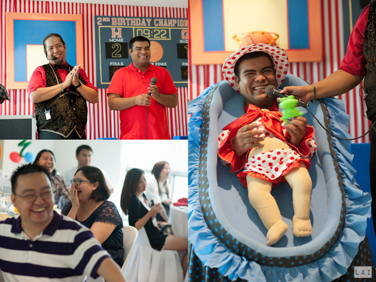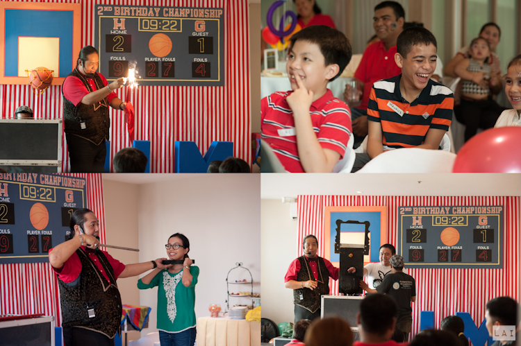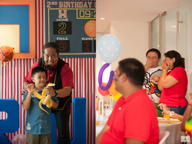 True enough, Rum was absolutely delighted and happy when he saw these items on his birthday party! In addition to this, a chalkboard art done by budding calligrapher-aunt Fleur Panga, welcomed the guests to the venue. Our program was given so much life by our magician-host-ventriloquist Amazing Arnold.